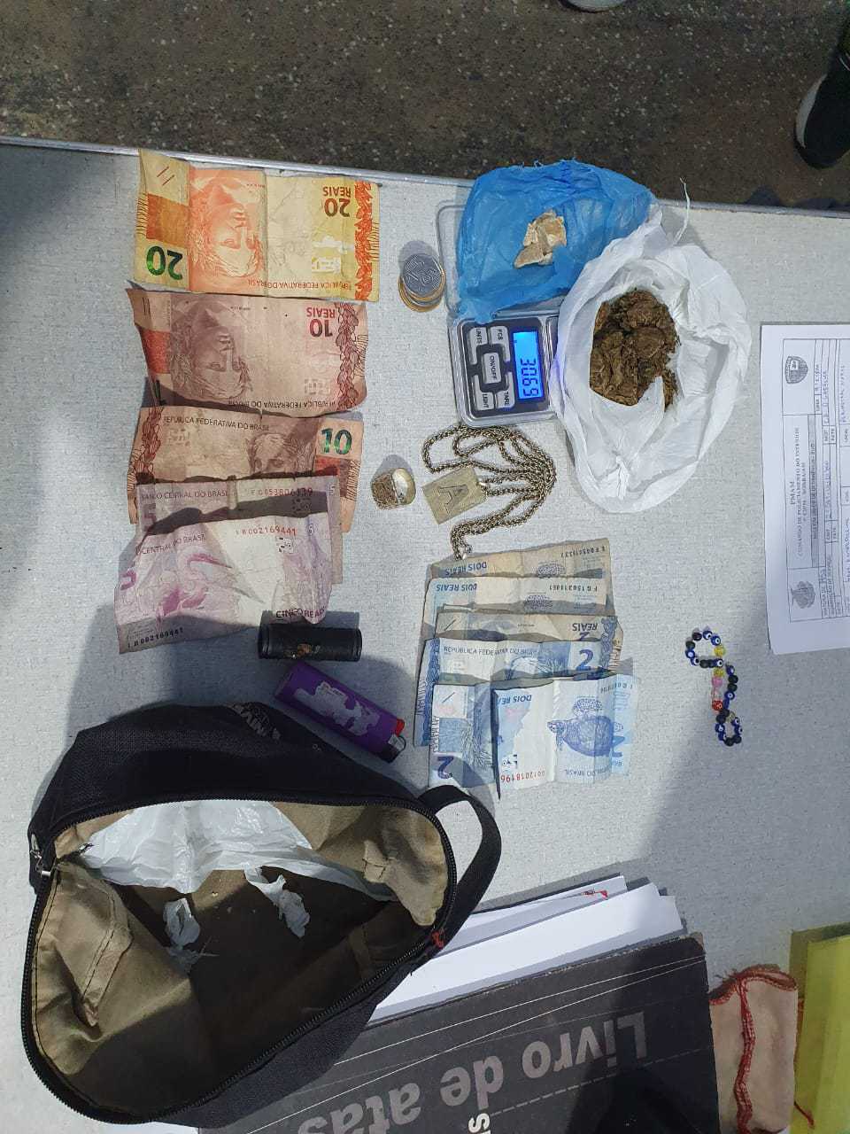 Em Borba, militares da 9ª Companhia Independente de Polícia Militar (CIPM) realizavam patrulhamento de rotina na rua Perimetral Norte, bairro Ipiranga, quando avistaram dois indivíduos em atitude suspeita. Durante abordagem e revista pessoal, foram encontradas com eles uma porção grande de maconha tipo skunk, uma porção de oxi, além de uma balança de precisão e R$ 69 em espécie.
