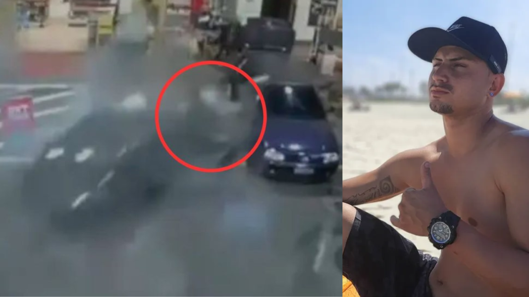 Nos vídeos, o veículo que Reinaldo dirige invade o carro em alta velocidade, atinge uma bomba de combustível, e atropela os dois jovens que estão na conveniência.