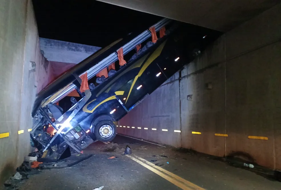 Segundo a Polícia Rodoviária Estadual, o veículo atingiu uma placa de sinalização e, em seguida, acabou caindo no vão do viaduto. O acidente aconteceu por volta das 3h, quando o ônibus transitava no sentido Campinas a Jaguariúna (SP). O veículo foi retirado do local do acidente por volta das 10h deste domingo.