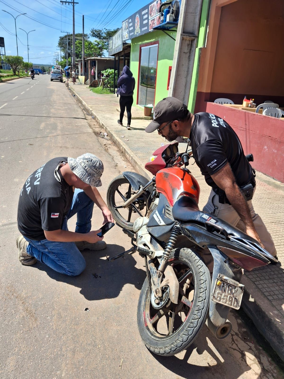 Entre as motos apreendidas está uma motocicleta modelo Honda CG-150, vermelha. Durante o procedimento de verificação, os policiais identificaram que o veículo estava com o sinal identificador adulterado. Logo em seguida, as equipes localizaram outra moto, desta vez uma Honda Bros-150, preta, com restrição de roubo. Os veículos foram apreendidos.