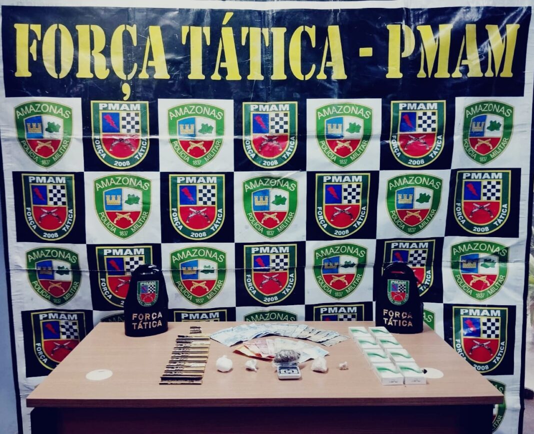 Em outra ocorrência, um adolescente de 17 anos foi apreendido por tráfico de drogas. Durante a ocorrência, os policiais receberam a informação que na rua Urucará havia um grupo de pessoas comercializando entorpecentes.