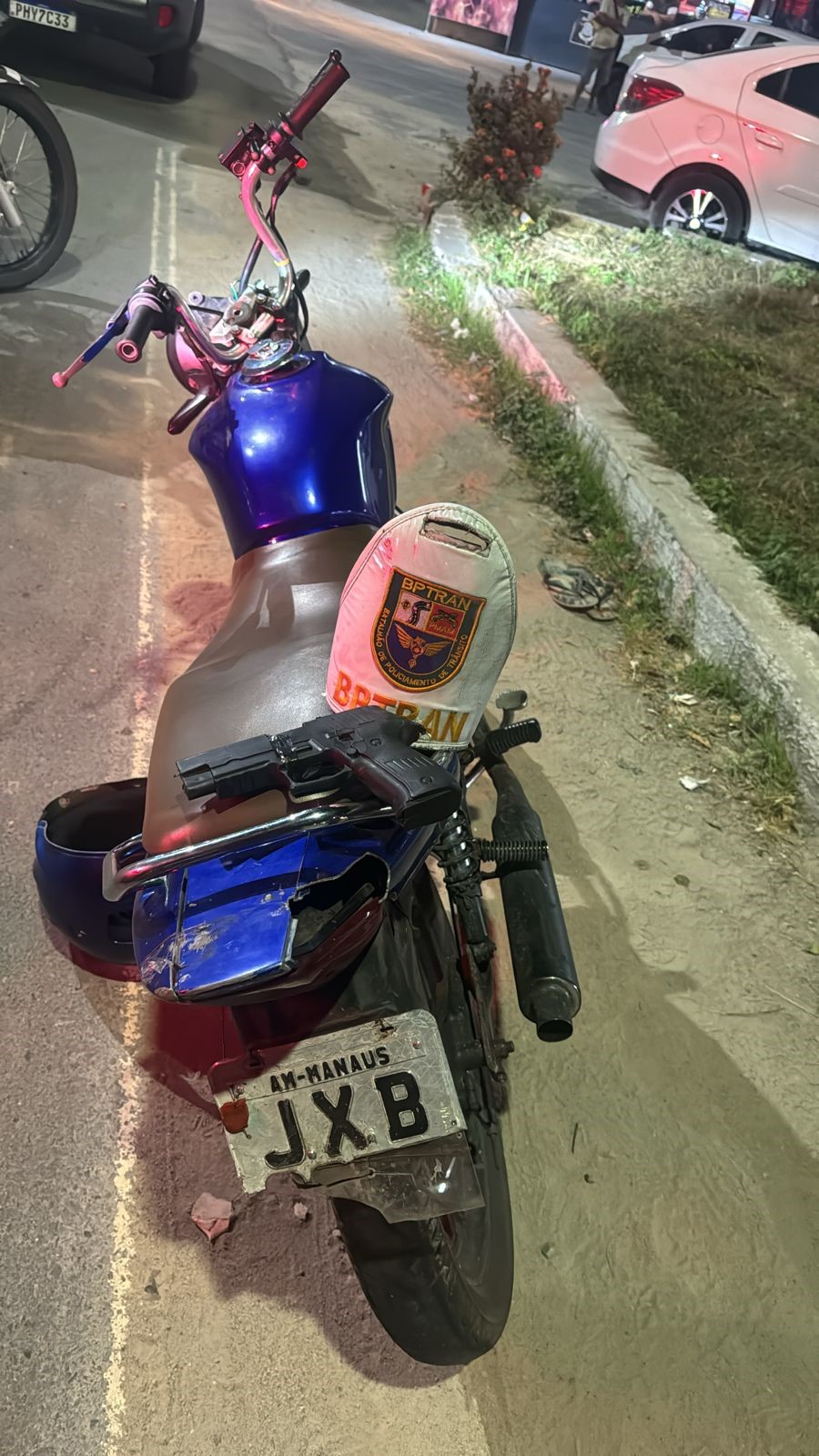 Os policiais militares realizavam patrulhamento de rotina na avenida Max Teixeira, por volta das 22h15, quando abordaram dois homens em uma motocicleta. Durante revista pessoal foi encontrada com o garupa uma arma falsa. Quando questionado sobre o objeto, ele não respondeu.