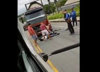Vídeo: Mototaxista e passageiro ficam feridos em choque com caminhão na ZL