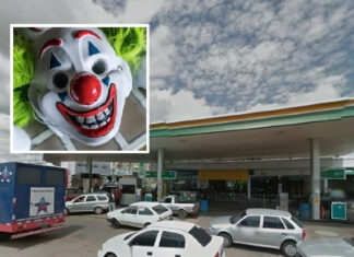 Um homem está sendo procurado após roubar uma conveniência de um posto de gasolina, usando máscara do personagem Coringa - vilão dos quadrinhos de...