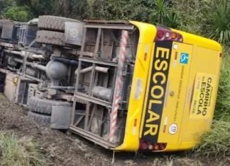 Homem bêbado furta ônibus escolar e causa acidente