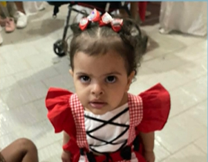 A pequena Mirella Pinho Francisconi, de 2 anos, está internada em estado grave após ser ferida por um tiro na cabeça em Pilares, na...
