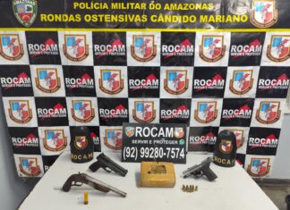 A Polícia Militar do Amazonas (PMAM), por meio das Rondas Ostensivas Cândido Mariano (Rocam), apreendeu duas armas de fogo e aproximadamente 1 quilo de...