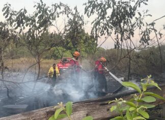 Em Manacapuru, bombeiros combatem incêndio em vegetação e impedem propagação para embarcações em estaleiro
