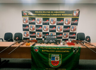 A Polícia Militar do Amazonas (PMAM), por meio das Rondas Ostensivas Cândido Mariano (Rocam) e do Batalhão de Policiamento Ambiental (BPAmb), prendeu três homens,...
