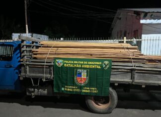 Polícia Militar do Amazonas apreende carga de madeira ilegal em Iranduba