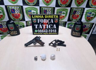 A Polícia Militar do Amazonas (PMAM), por meio da Força Tática, apreendeu uma arma de fogo, um simulacro e entorpecentes, no domingo (30/06), durante...