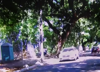 Imagens de câmeras de segurança mostram o momento em que o caso aconteceu. Os homens que aparecem na moto, que é roubada, são bandidos...