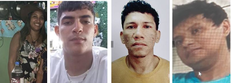 A Polícia Civil do Amazonas (PC-AM), por meio da Delegacia Especializada em Ordem Política e Social (Deops), divulga as imagens de quatro pessoas desaparecidas em Manaus. São elas: Maria Madalena de Souza Tavares, 30; Pedro Enrique Zambrano Rodriguez, 21; Rodrigo de Souza e Souza, 34; e Ronald Costa Fragoso, 29. Os desaparecimentos ocorreram em datas e locais distintos.