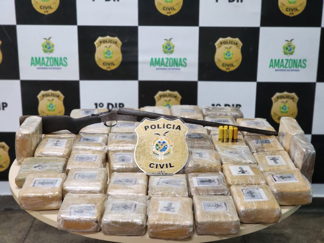 “O indivíduo também estava em posse uma espingarda calibre 20, que estava sendo conduzida em uma embarcação junto com as drogas apreendidas. As investigações apontam que o material teria sido coletado em Barcelos e São Gabriel da Cachoeira (a 399 e 852 quilômetros de Manaus, respectivamente), e seria destinado a um grupo criminoso da zona sul da capital”, disse.