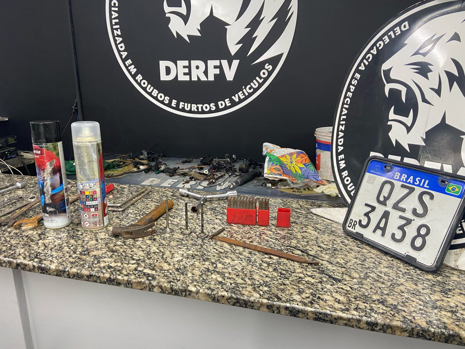 Além das motocicletas, também foram apreendidos diversos objetos pertencentes a ‘Dubai’, utilizados para adulterar veículos furtados. No momento da abordagem, Pedro e Edenilson estavam em posse de uma quarta motocicleta, usada nos crimes e que apresentava placa adulterada. Diante disso, ambos também foram presos pelo crime de adulteração de sinal identificador de veículo automotor.