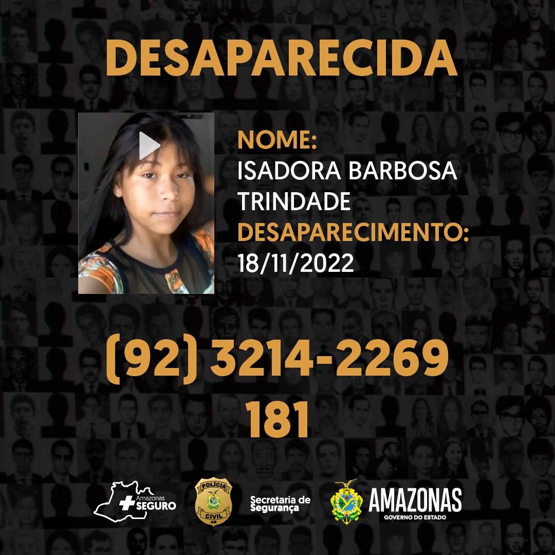 A delegada Joyce Coelho, titular da unidade especializada, solicita a quem tiver informações sobre a localização de Isadora, que entre em contato com a Depca, por meio do número (92) 99486-4027, ou pelo 100, Disque Direitos Humanos.