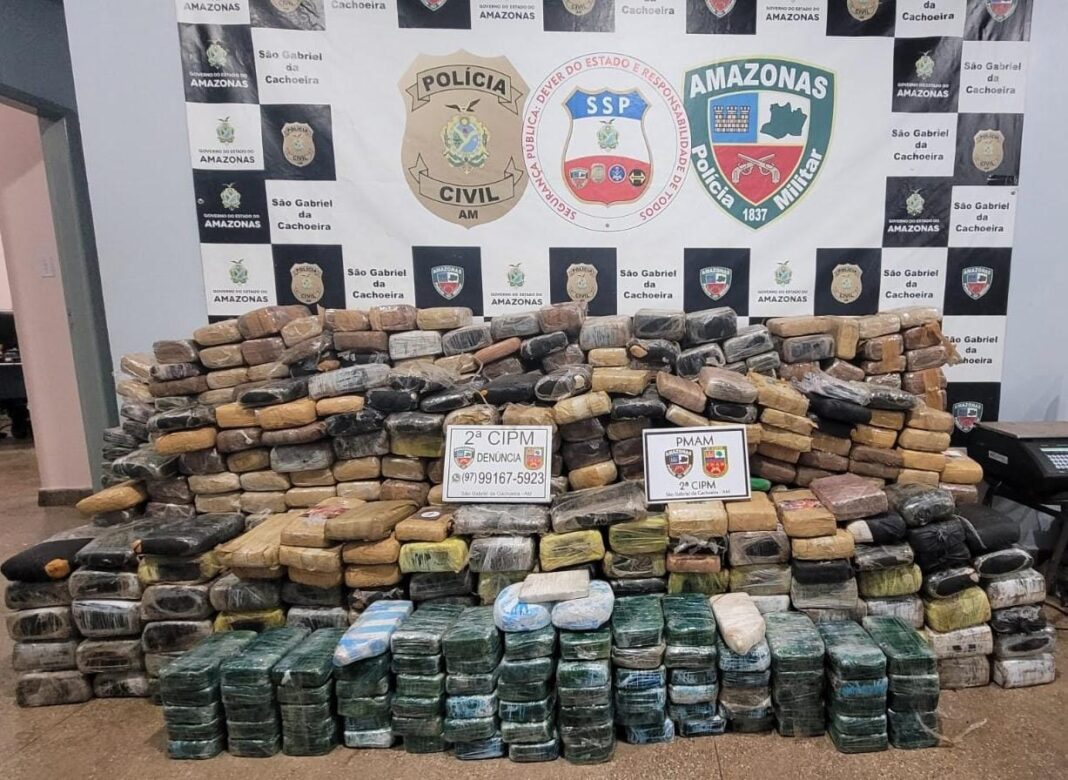 A Polícia Militar do Amazonas (PMAM), por meio da 2ª Companhia Independente de Polícia Militar (CIPM), apreendeu, na noite de quarta-feira (08/11), 836 quilos de entorpecentes, no município de São Gabriel da Cachoeira (distante 852 quilômetros da capital). Os produtos pesaram ao todo 836 quilos e foram avaliados em aproximadamente R$ 18 milhões.