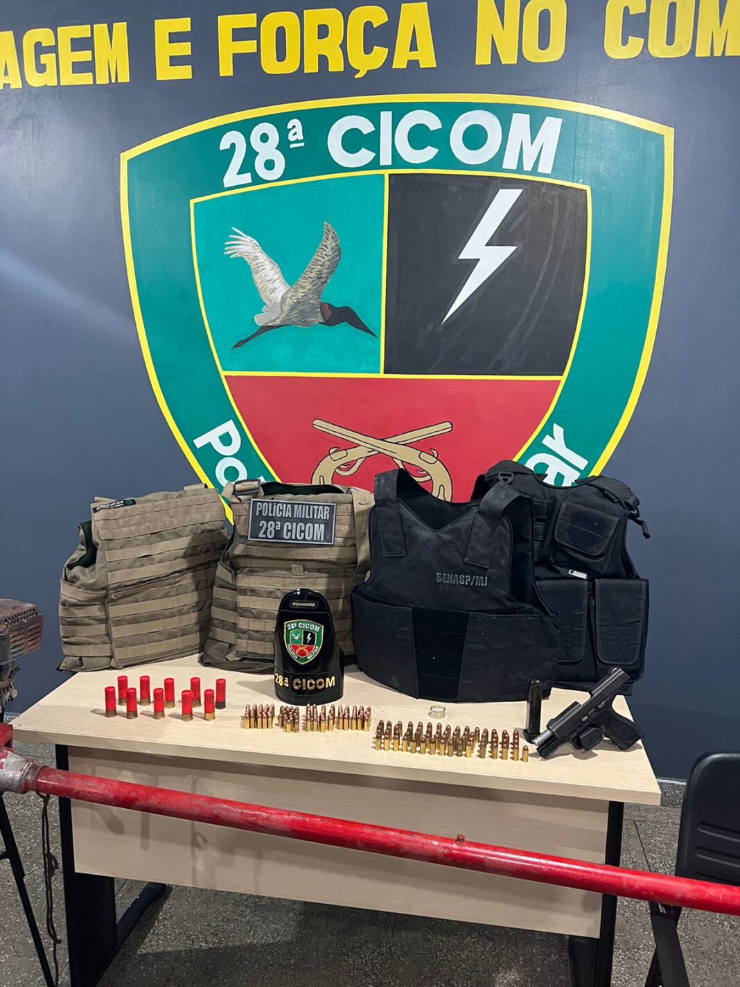 A Polícia Militar do Amazonas (PMAM), por meio da 28ª Companhia Interativa Comunitária (Cicom), apreendeu uma arma de fogo, 121 munições de calibres diversos e quatro coletes balísticos, durante ação na tarde de quinta-feira (20/07), na comunidade Castanheira, localizada no bairro Puraquequara, zona leste de Manaus. Dois homens, de 21 e 23 anos, foram presos.