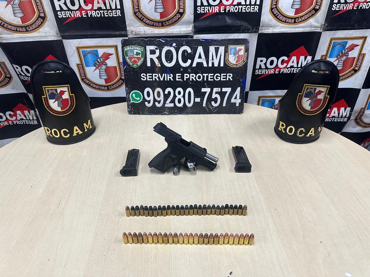 A Polícia Militar do Amazonas (PMAM), por meio das Rondas Ostensivas Cândido Mariano (Rocam), prendeu um homem, 30 anos, e apreendeu um adolescente, de 15. As ações aconteceram entre sábado (12/10) e domingo (13/10), na zona oeste de Manaus, e resultaram na apreensão de três armas de fogo e mais de 50 munições.
