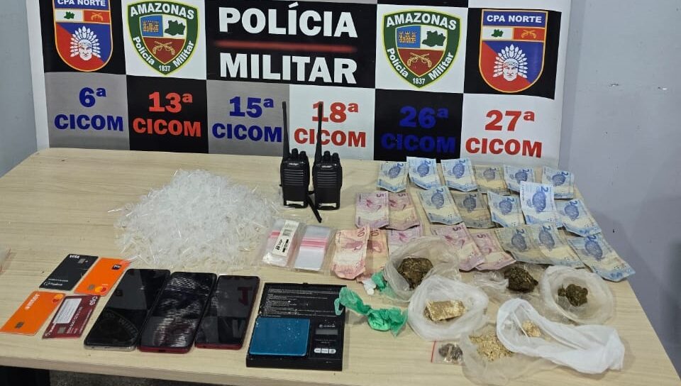 A Polícia Militar do Amazonas (PMAM), por meio da 6ª Companhia Interativa Comunitária (Cicom), prendeu quatro pessoas, com idades de 27, 35, 38 e 42 anos, por tráfico de drogas e associação para o tráfico no domingo (14/12), no bairro Cidade Nova, zona norte de Manaus.