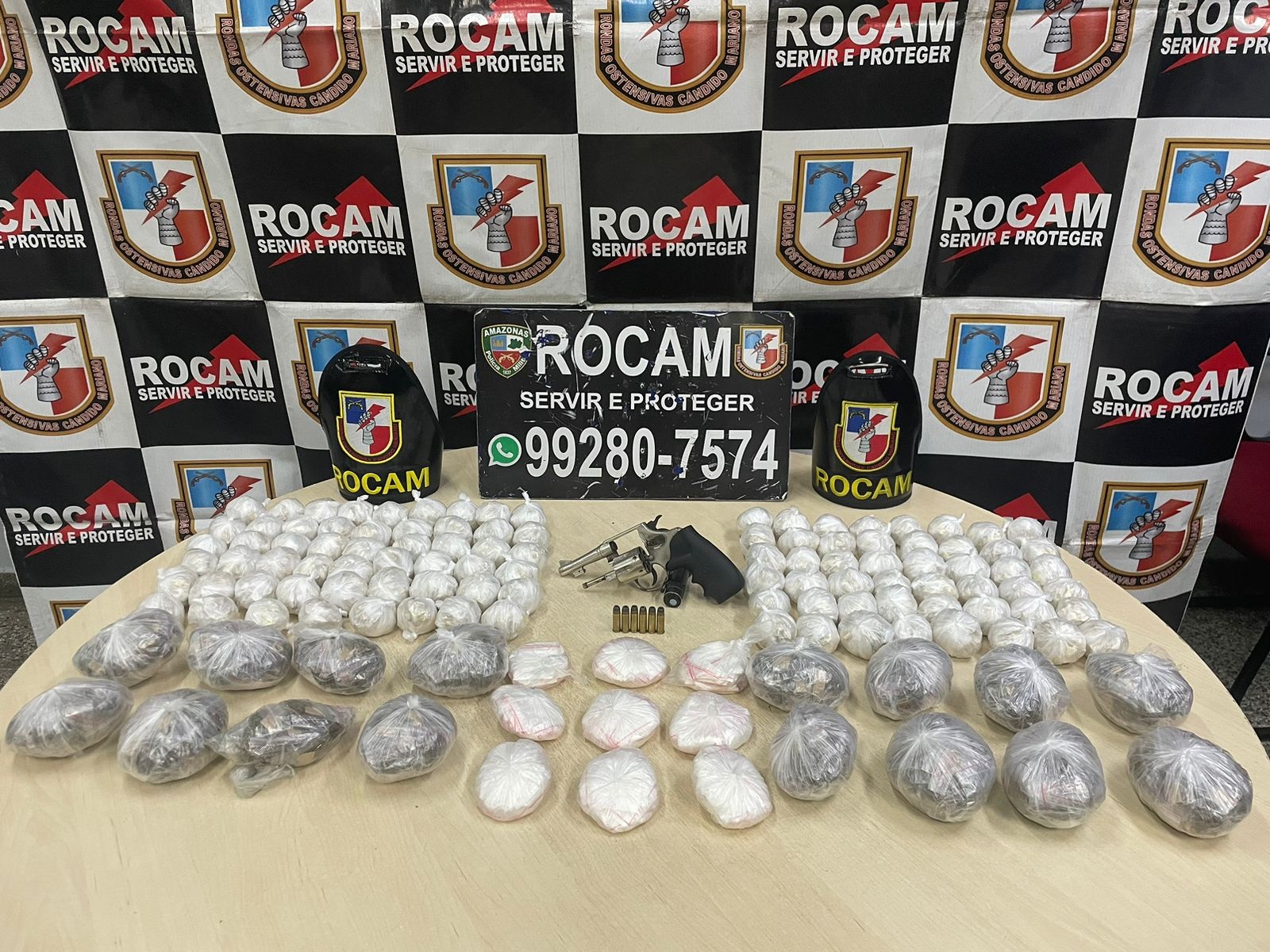 Equipes da Polícia Militar do Amazonas (PMAM), por meio da Ronda Ostensiva Cândido Mariano (Rocam), detiveram, na noite de sexta-feira (09/12), um homem de 33 anos, por porte ilegal de arma de fogo e tráfico de drogas, no beco Tre-lê-lê, no bairro Compensa, zona oeste de Manaus.