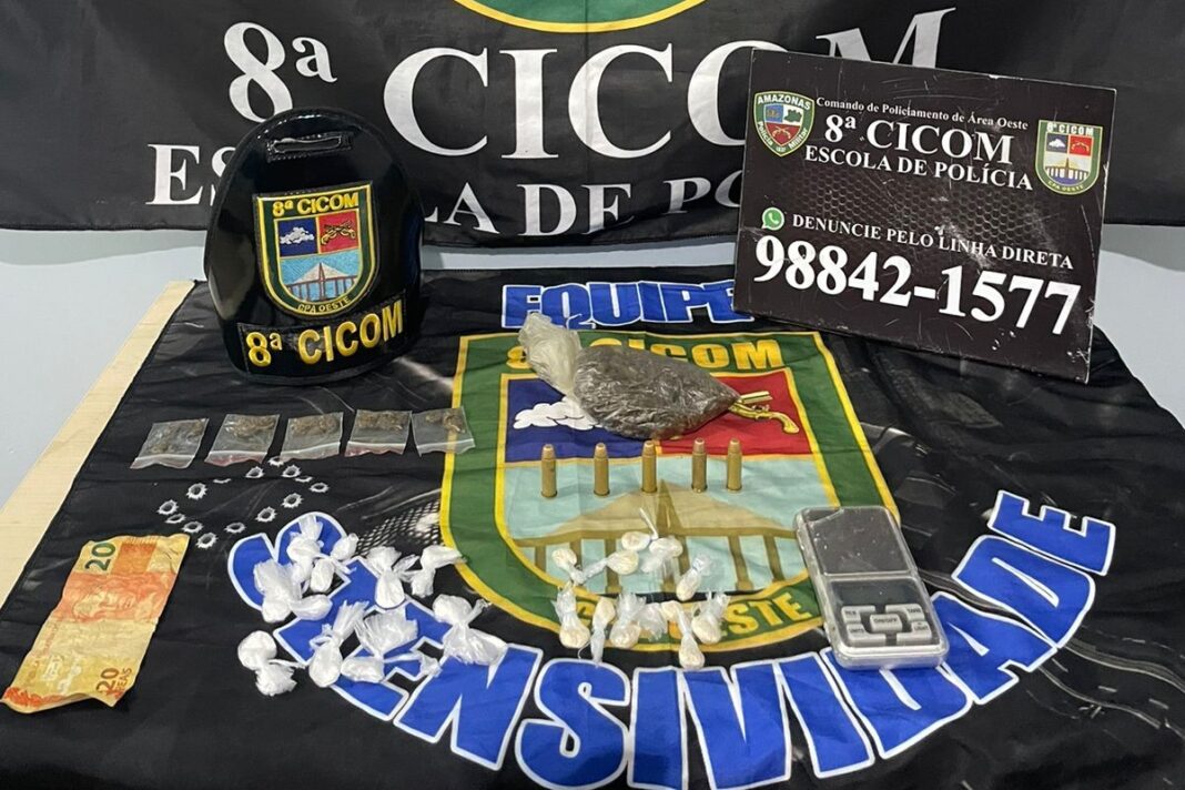 A Polícia Militar do Amazonas (PMAM), por meio da 8ª Companhia Interativa Comunitária (Cicom), prendeu, na noite de domingo (06/08), um homem, de 32 anos, por tráfico de entorpecentes e porte ilegal de arma de fogo, no bairro Compensa, na zona oeste de Manaus.