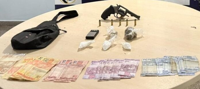 Durante a incursão na área e abordagem aos suspeitos, os policiais encontraram um revólver calibre 38 com cinco munições intactas, além de R$ 852 em espécie.