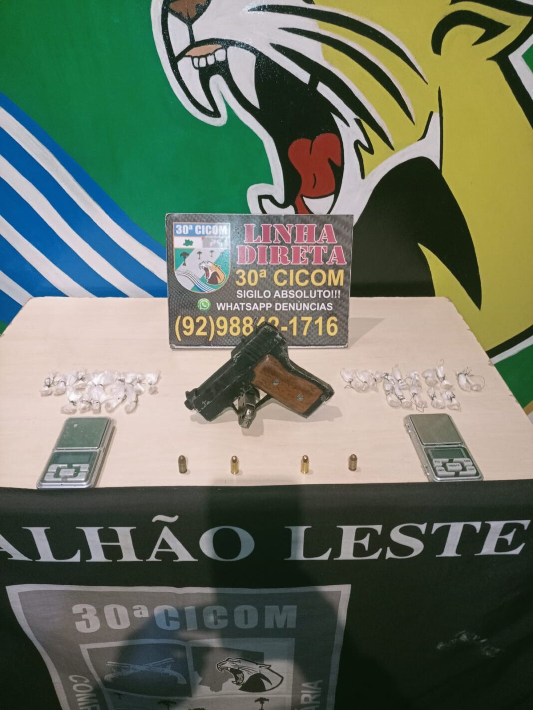 A Polícia Militar do Amazonas (PMAM) prendeu dois homens, capturou um foragido e apreendeu uma pistola calibre 380, duas munições, 30 porções de oxi de cocaína, duas balanças de precisão, um aparelho celular e recuperou uma motocicleta roubada, em ações desencadeadas pela equipe policial da 30ª Companhia Interativa Comunitária (Cicom), no domingo (23/03), em bairros da zona leste da capital.