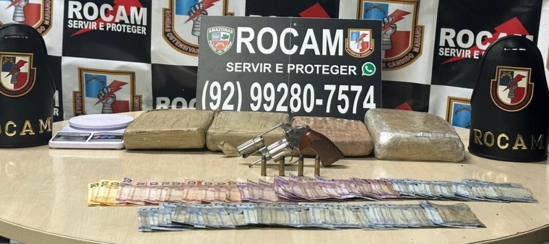A Polícia Militar do Amazonas (PMAM), por meio das Rondas Ostensivas Cândido Mariano (Rocam), prendeu um homem de 26 anos,  por tráfico de drogas e porte ilegal de arma de fogo. A ação ocorreu na noite de quinta-feira (16/11), no bairro Petrópolis, zona sul de Manaus.
