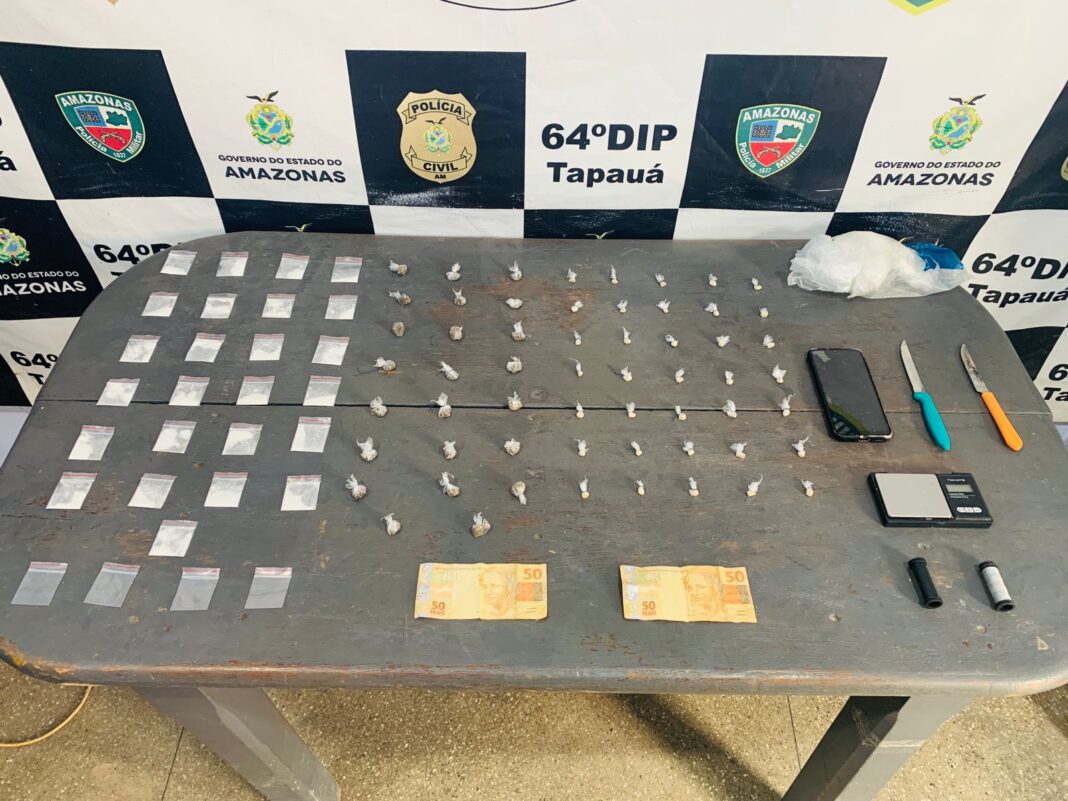A apreensão dos entorpecentes está avaliada em R$ 3.200. O suspeito foi detido e conduzido à 64ª Delegacia Interativa de Polícia (DIP) de Tapauá.
