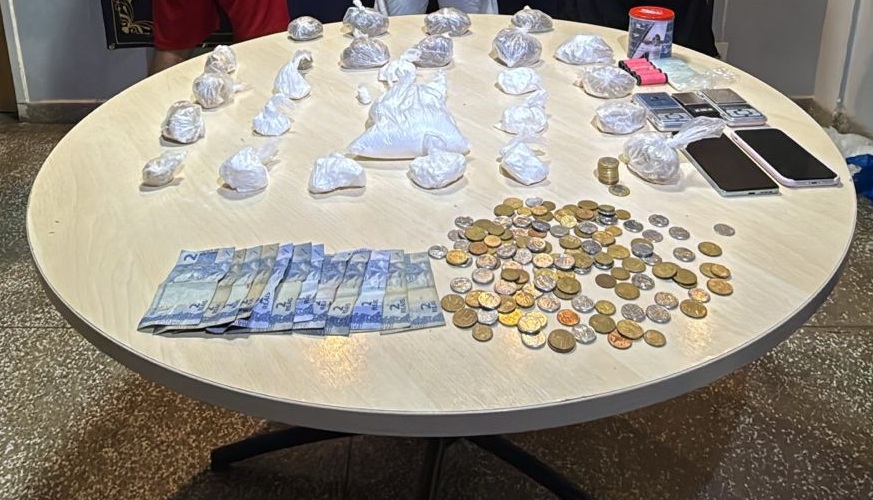 Com o trio, os policiais encontraram 30 porções de entorpecentes: 13 de cocaína, oito de oxi, oito de maconha e uma de pasta base. Além disso, apreenderam três balanças de precisão e R$ 130,50 em espécie.