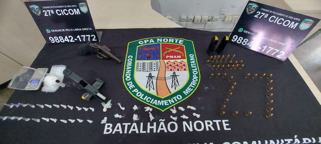 A Polícia Militar do Amazonas (PMAM), por meio da 27ª Companhia Interativa Comunitária (Cicom), prendeu, na terça-feira (29/08), três homens, de idades não informadas, por tráfico de entorpecentes e porte ilegal de arma de fogo, no bairro Nossa Senhora de Fátima, na zona norte.