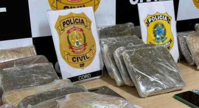 A Polícia Rodoviária Federal apreendeu — em operação conjunta com a Polícia Civil do DF — 60 quilos de skunk, uma variação mais potente da maconha. A droga apreendida é avaliada em cerca de R$ 3,6 milhões, segundo os policiais. Quatro suspeitos foram detidos: uma mulher e três homens. A operação, batizada de Rota do Norte, ocorreu na tarde desta quinta-feira (29).