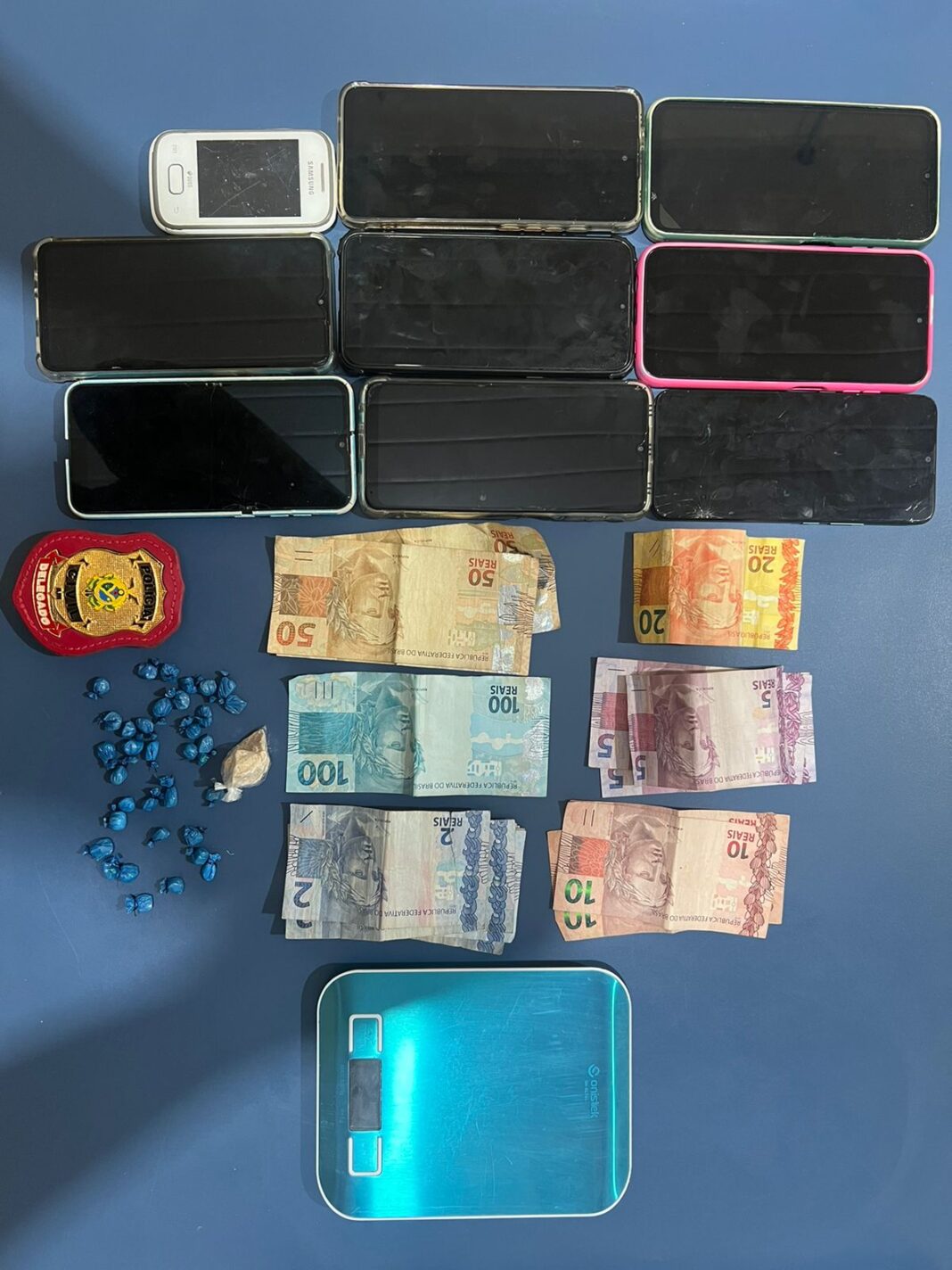 “Na casa deles foram encontradas mais de 35 trouxinhas de crack, cerca R$ 300 em espécie, proveniente do tráfico de drogas, uma balança de precisão e nove aparelhos celulares que estavam empenhados como dívida do tráfico. Eles estavam sendo monitorados, e descobrimos todo o modus operandi do casal, que comercializava entorpecentes em sua própria residência” explicou.