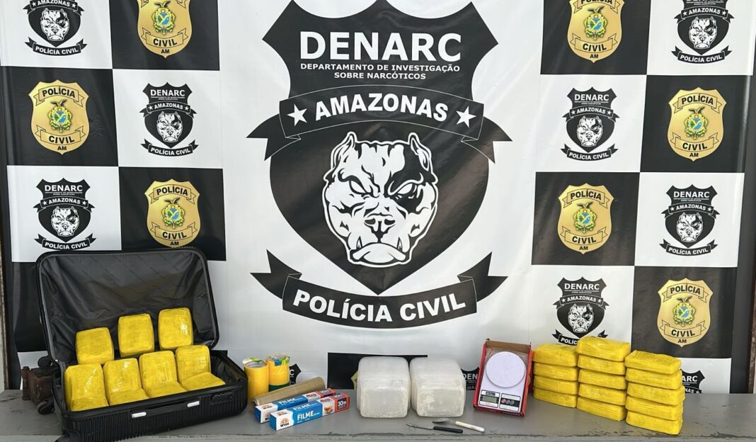 A Polícia Civil do Amazonas (PC-AM), por meio do Departamento de Investigação sobre Narcóticos (Denarc), prendeu em flagrante na quarta-feira (26/06) Jesus Alberto Velez Montezuma, de 42 anos, pelo crime de tráfico de drogas. A ação policial foi realizada quando ele saía de sua residência, localizada na Travessa Lindóia, bairro Cidade Nova, zona norte.