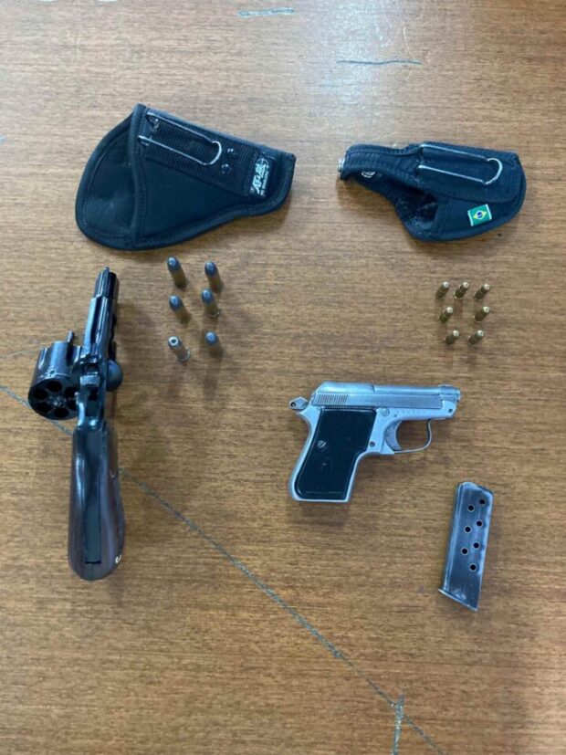 “No imóvel foram localizadas duas armas de fogo, sendo uma pistola bereta, calibre 635, com carregador e sete munições, e um revólver, calibre 38 e seis munições”, disse a delegada.