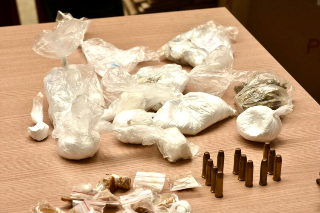 Durante diligências, foram apreendidas drogas tipo maconha, cocaína, oxi e ecstasy, um revólver calibre 38, munições e outros materiais utilizados para o tráfico de drogas.