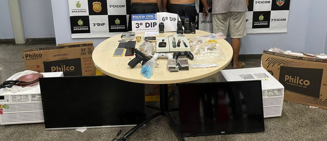 A Polícia Civil do Amazonas (PC-AM), por meio do 3º Distrito Integrado de Polícia (DIP), prendeu em flagrante, nesta quinta-feira (25/04), Ismael Nunes de Oliveira, 23, conhecido como “Coração”; Ellenayra Pereira de Souza, 31, o “Pedrinho”, e Steffeson Ruan Froes dos Santos, 28, chamado de “Caponga”, pelos crimes de receptação e tráfico de drogas.