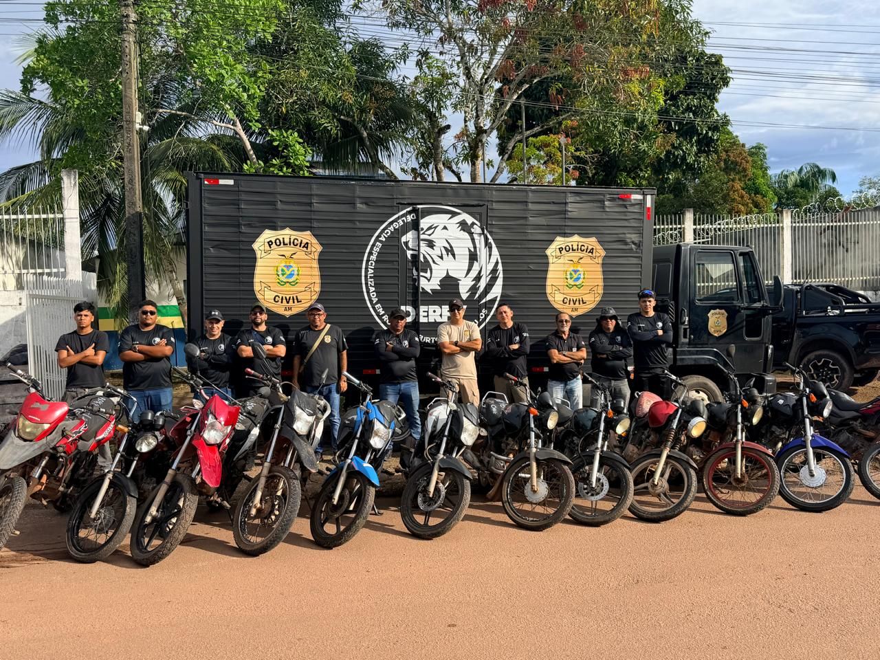 No dia 11 de março, os policiais da DERFV realizaram a primeira operação de 2026 em Manacapuru. A ação resultou na apreensão de 20 motocicletas adulteradas, possivelmente com restrições de roubo ou furto, durante diligências realizadas em diversos bairros do município.