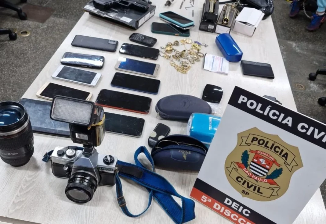 Com eles, foram apreendidos dois capacetes de moto, celulares, tablet, máquinas fotográficas, óculos, joias, chaves michas, entre outros. Na casa, havia também uma pistola calibre 7,65mm, com nove cartuchos, e um simulacro de arma de fogo. Levantamento dos policiais apontaram que parte do material apreendido tinha sido levado de duas casas roubadas em fevereiro.
