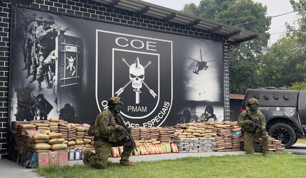 A Polícia Militar do Amazonas (PMAM), em conjunto com a Polícia Federal (PF), apreendeu 1,8 tonelada de entorpecente em Santa Isabel do Rio Negro (a 630 quilômetros de Manaus). A ação, registrada na madrugada de segunda-feira (20/11), foi coordenada pela Companhia de Operações Especiais (COE) da PMAM, com o apoio da Delegacia de Repressão a Drogas (DRE/PF) e do 1º Grupamento de Polícia Militar (GPM).
