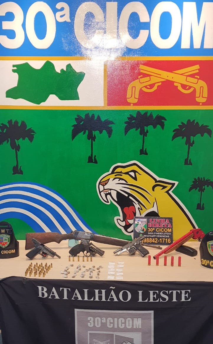 A Polícia Militar do Amazonas (PMAM), por meio da 30ª Companhia Interativa Comunitária (Cicom), apreendeu cinco armas de fogo, porções de entorpecentes e munições, na quinta-feira (16/05), após denúncia informar, via linha direta, de movimentação de venda de drogas e possível ataque à facção rival, no bairro Jorge Teixeira, zona leste de Manaus.
