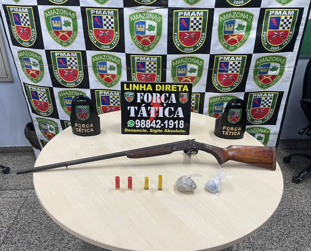 A Polícia Militar do Amazonas (PMAM), por meio da Força Tática, apreendeu uma espingarda, durante patrulhamento de rotina, na quinta-feira (22/08), no bairro Tarumã, zona oeste de Manaus.
