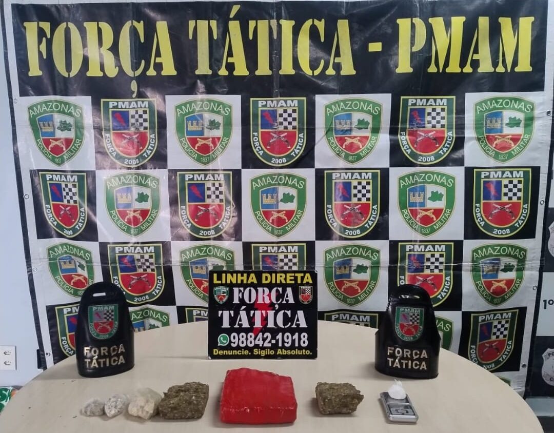A Polícia Militar do Amazonas (PMAM), por meio da Força Tática, apreendeu mais de 1,5kg de entorpecentes do tipo maconha, cocaína e oxi e uma balança de precisão, na sexta-feira (30/01). A ação policial foi efetuada no bairro Educandos, zona sul da capital amazonense.