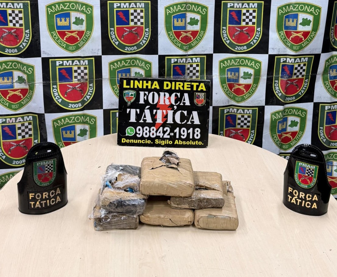 A Polícia Militar do Amazonas (PMAM), por meio da Força Tática, apreendeu seis tabletes de entorpecente, na tarde de terça-feira (27/01), no bairro Compensa, zona oeste de Manaus.