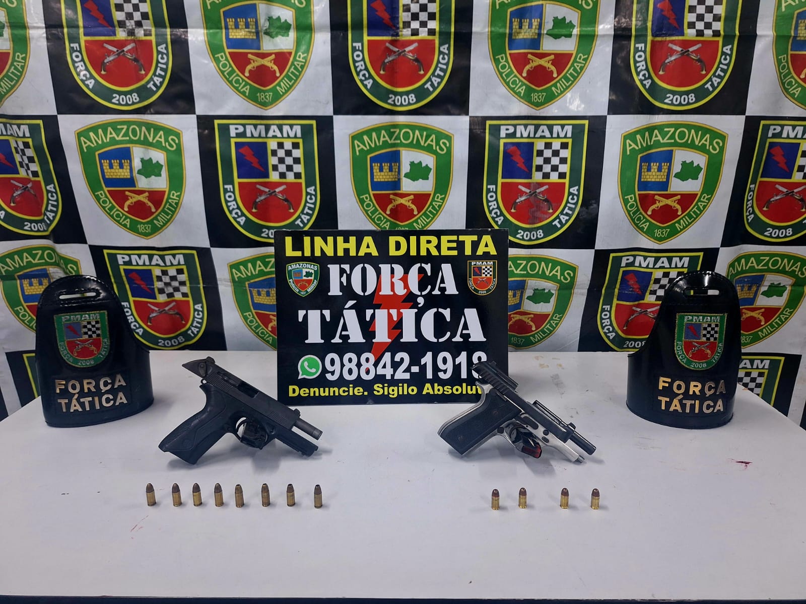 A Polícia Militar do Amazonas (PMAM), por meio da Força Tática (FT), apreendeu três armas de fogo, durante patrulhamento no domingo (28/07). As ocorrências foram registradas nas zonas norte e sul de Manaus.
