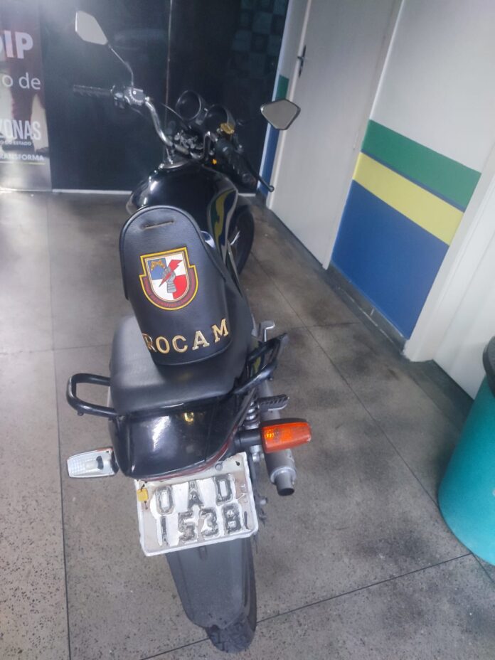 Por volta das 17h40, a equipe da Rocam recebeu denúncia, via linha-direta, de que um foragido, de 35 anos, estava trafegando em uma motocicleta Honda, de placa OAD 1538, na avenida Rodrigo Otávio, bairro Japiim.
