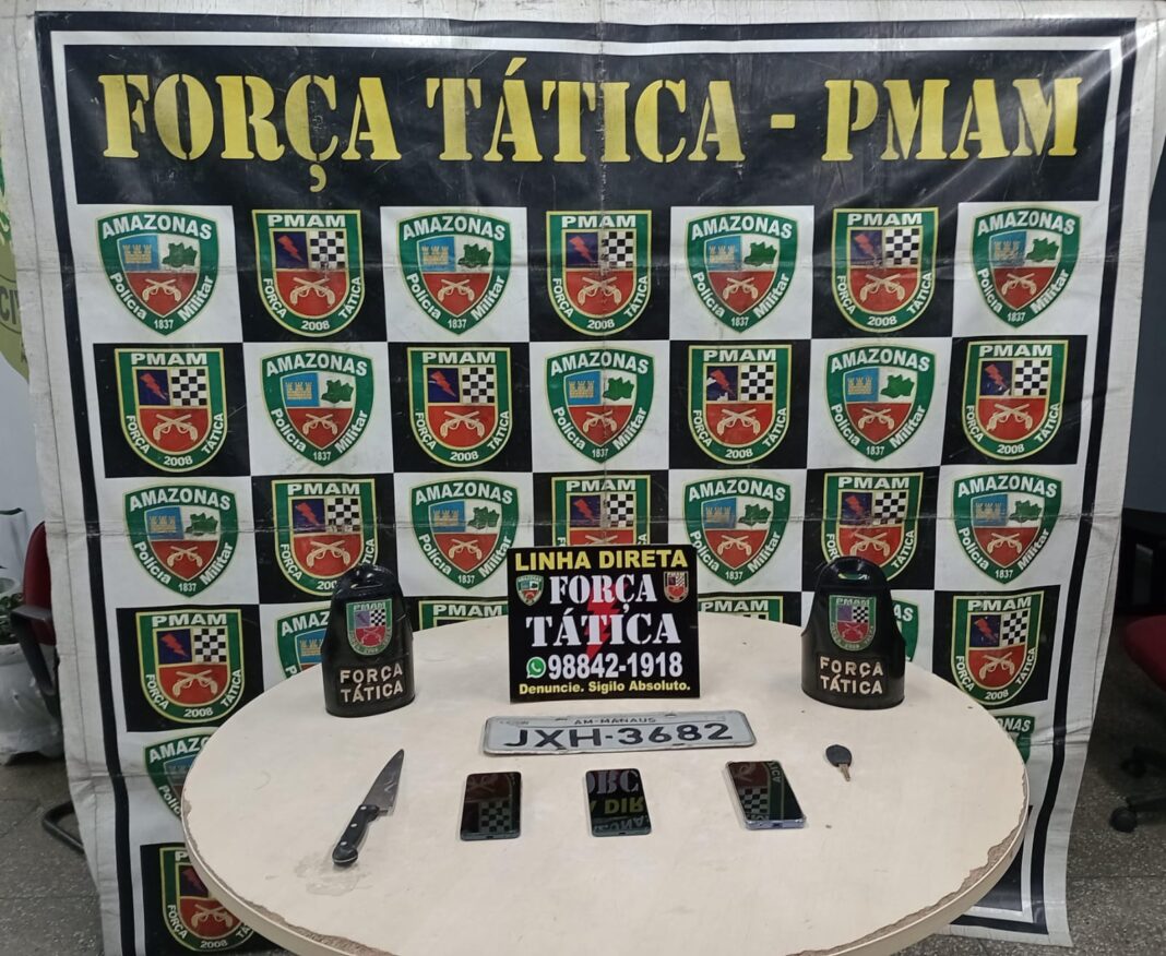 A Polícia Militar do Amazonas (PMAM), por meio da Força Tática, prendeu dois homens, de 18 e 20 anos, e apreendeu um adolescente, de 17, suspeitos de cometerem roubos utilizando um veículo com restrição de roubo. A ação policial foi realizada na madrugada desta segunda-feira (25/11), na avenida Autaz Mirim, zona leste.