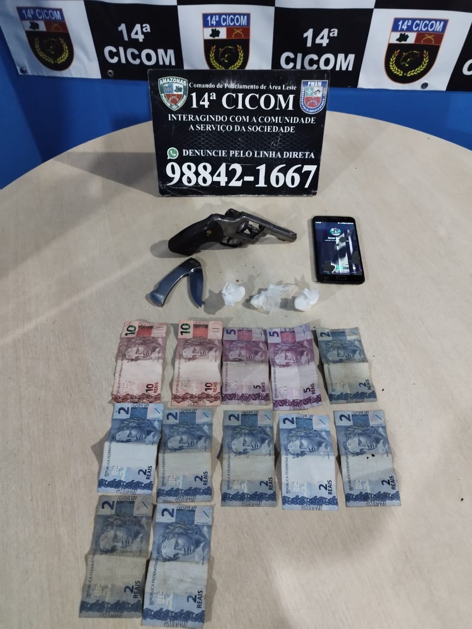 A Polícia Militar do Amazonas (PMAM), por meio da 14ª Companhia Interativa Comunitária (Cicom), prendeu dois homens, de 19 e 32 anos, e apreendeu arma de fogo e drogas. A ação policial ocorreu na noite de sexta-feira (26/04), na comunidade Nova Floresta, zona leste de Manaus.