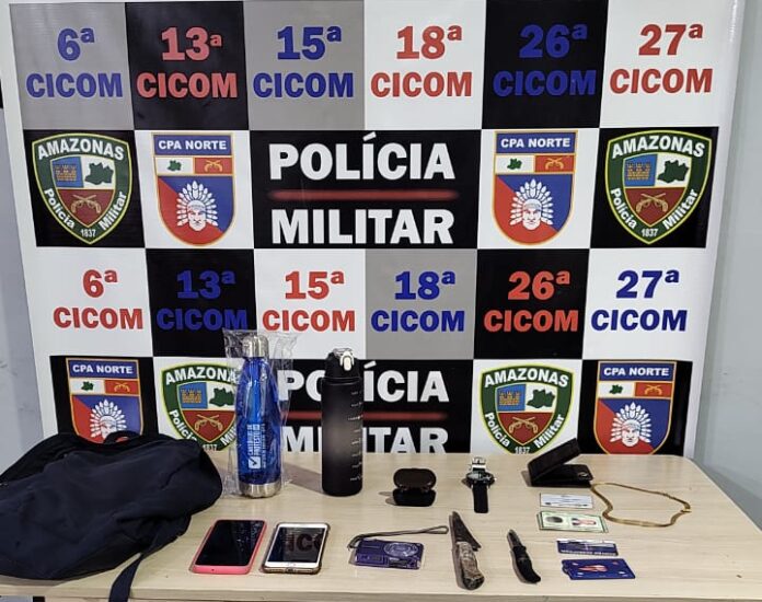 A Polícia Militar do Amazonas (PMAM), por meio da 27ª Companhia Interativa Comunitária (Cicom), prendeu dois homens, de idades não informadas, suspeitos de envolvimento em roubo a um passageiro do transporte coletivo. A ação policial aconteceu na terça-feira (17/09), no bairro Novo Aleixo, zona norte de Manaus.
